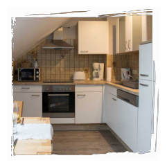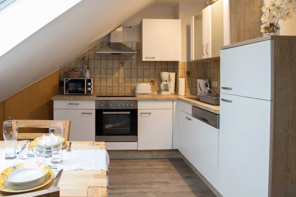 - Vollausgestattete Küche (Spülmaschine, Kühlschrank mit Gefrierfach, Kaffeemaschine, Toaster, Wasserkocher, Herd mit Ceranfeld, Backofen, etc.)